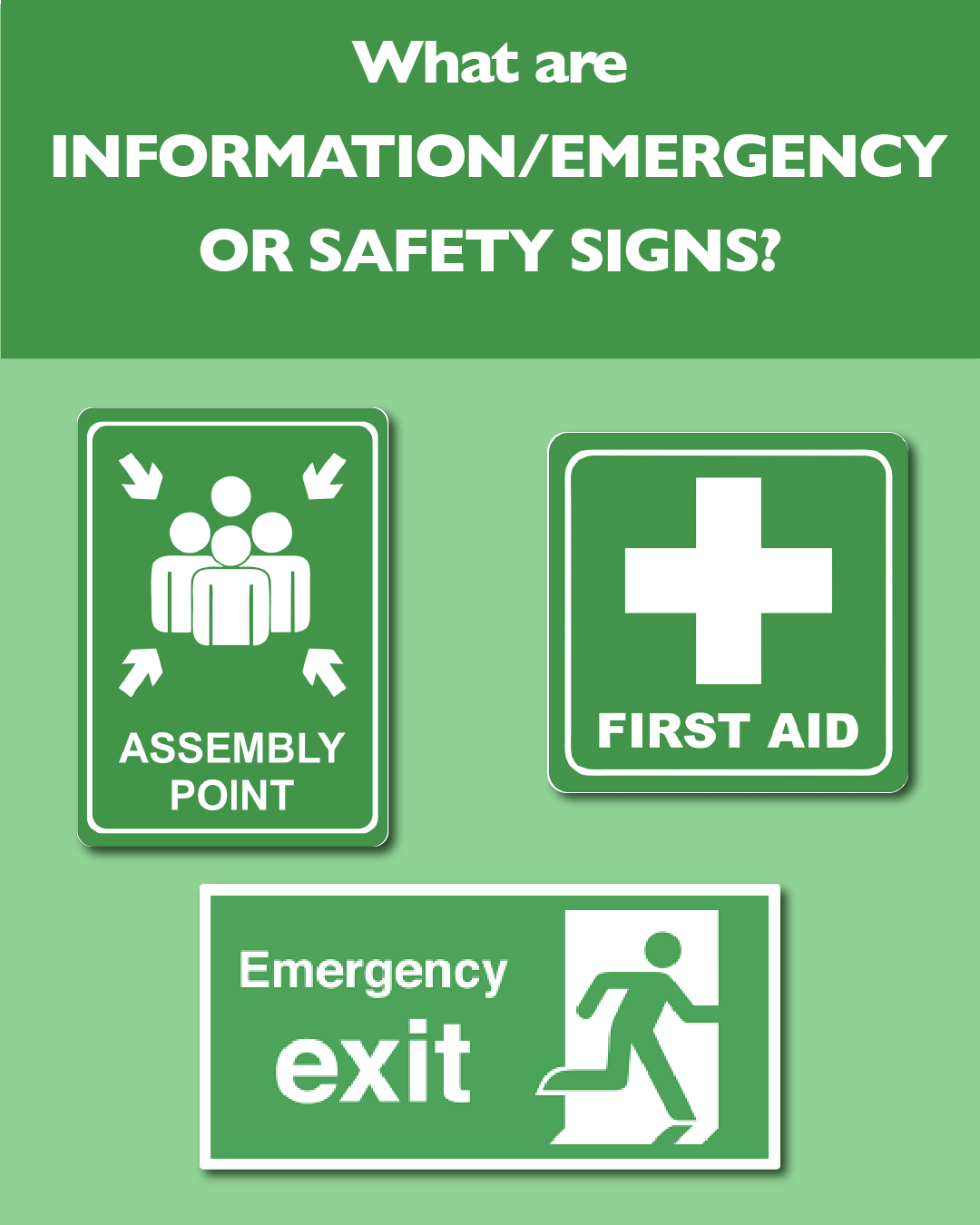 These signs provide directions to safety in an emergency or supplies to keep you safe. All areas and equipment must remain clear, never obstructed or blocked. Enter our survey for a chance to win!